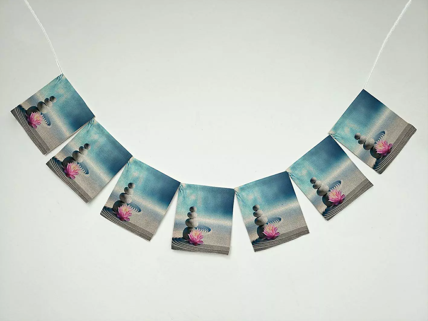The size of cardstock is 12x14cm,you can fix this banner wherever you like easily and adjust the gap between each flag freely. The package include 7pc cardstocks and 1pc of white satin ribbon. MaterialCotton and Linen.Two sides printing. This banner is not only a good decoration, but also a nice photo booth and props for your party extra special, wedding party, birthday party, reception table decorations.