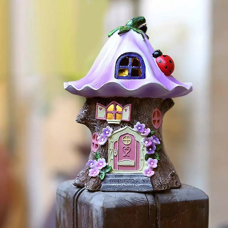 3. Mysterious little dwarf fairy house with solar garden lights to add color to your garden