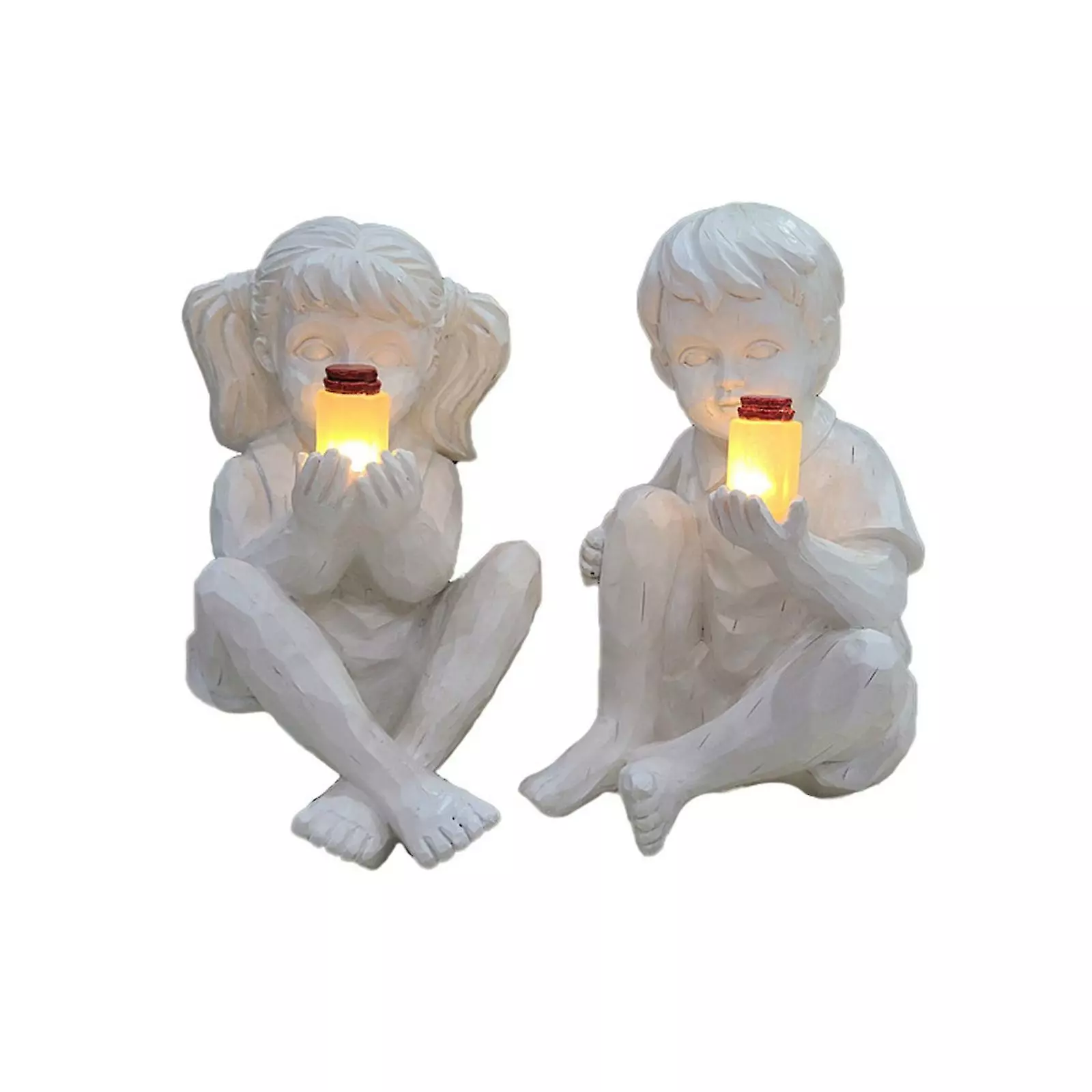 1. Boys Girls Statue: The garden child statue brings back memories of childhood fun. They looked very naive, and their eyes were full of surprise. The charming statues look great in any garden day and night.