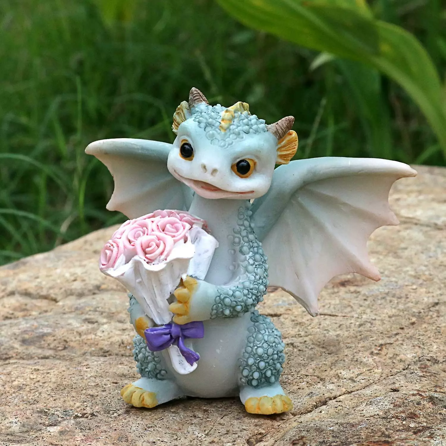 PERFECT GIFT: The smiling dragon with flowers in hand is a thoughtful gift, perfect for the home, garden, terrarium, office table top or shelf.