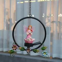 Cumdel Solar Garden Lamp Decorative Resin Flower Fairy Statue Hanging Ornament Waterproof Outdoor Lawn