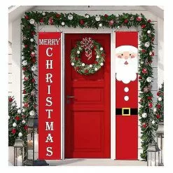 Garden Sculptures (11) Merry Christmas Santa Party Hanging Banner Garden Banners Xmas Door Decoration