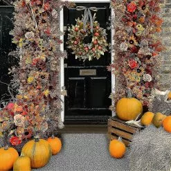 Garlands Autumn Wreath Frame For Front Door Outside, Fall Eucalyptus Pomegranate Farmhouse Wreath Rustic Thanksgiving Wreath Fall Door Wreaths Garden Home Deco