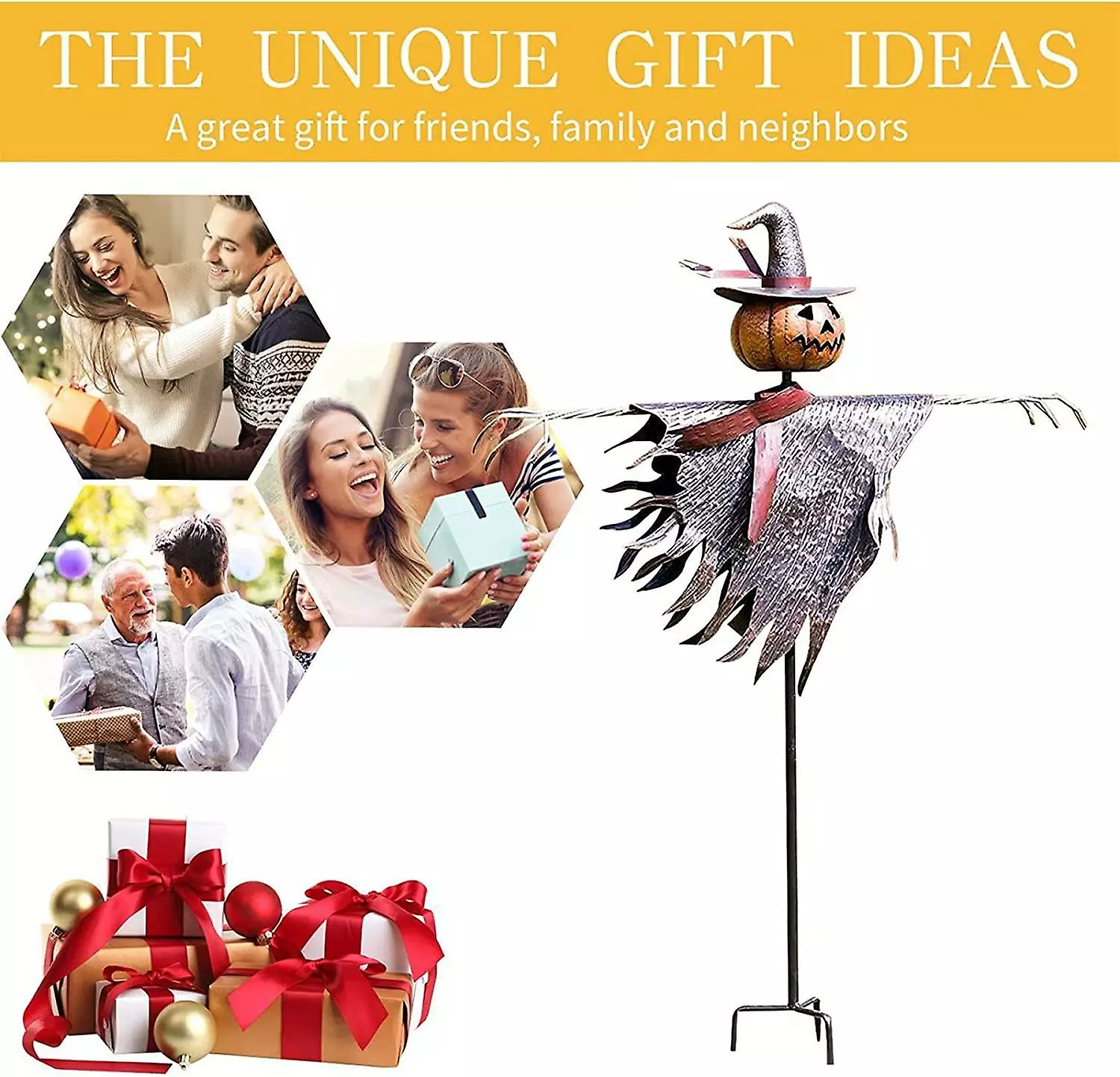 [Unique design]-Scarecrow pumpkin lamp head with witch hat, make your garden more attractive on Halloween. Your family must love this unique Halloween scarecrow