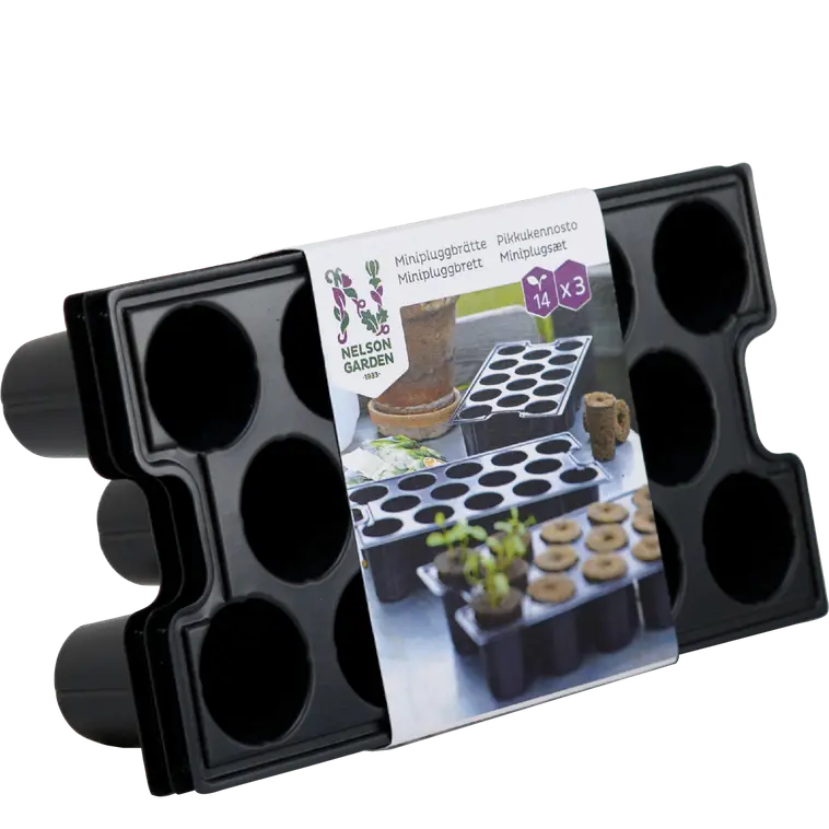 Pienet 14-paikkaiset kennostot voi täyttää mullalla tai valmiilla kapseleilla. Helpottaa kylvöä, esikasvatusta ja koulintaa. Aseta tarjottimelle tai laatikkoon, peitä kelmulla tai kannella. Polystyreeniä (PS).