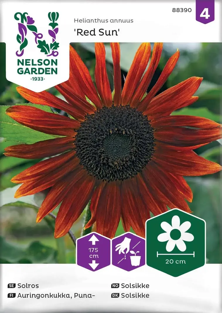 Nelson Garden Siemen Auringonkukka, Puna-, Red Sun