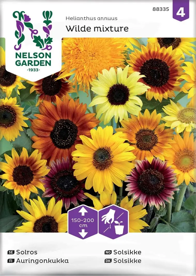 Seos erikorkuisia ja-värisiä auringonkukkia. Kukan väri vaihtelee kullankeltaisen, pronssin ja punaisen sävyissä. Sopii suojakasviksi tai muurin viereen. Kaunis kimpuissa.