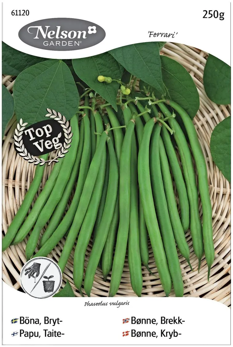 Hieno ja maukas papulajike, tuottaa runsaan sadon. Korjaa satoa usein, n.12cm pitkinä. Palot keitetään ja syödään kokonaisina, oikea herkku! Viihtyy kosteutensa säilyttävässä, runsasmultaisessa ja läpäisevässä maassa, suojaisessa paikassa. Kastele runsaasti.