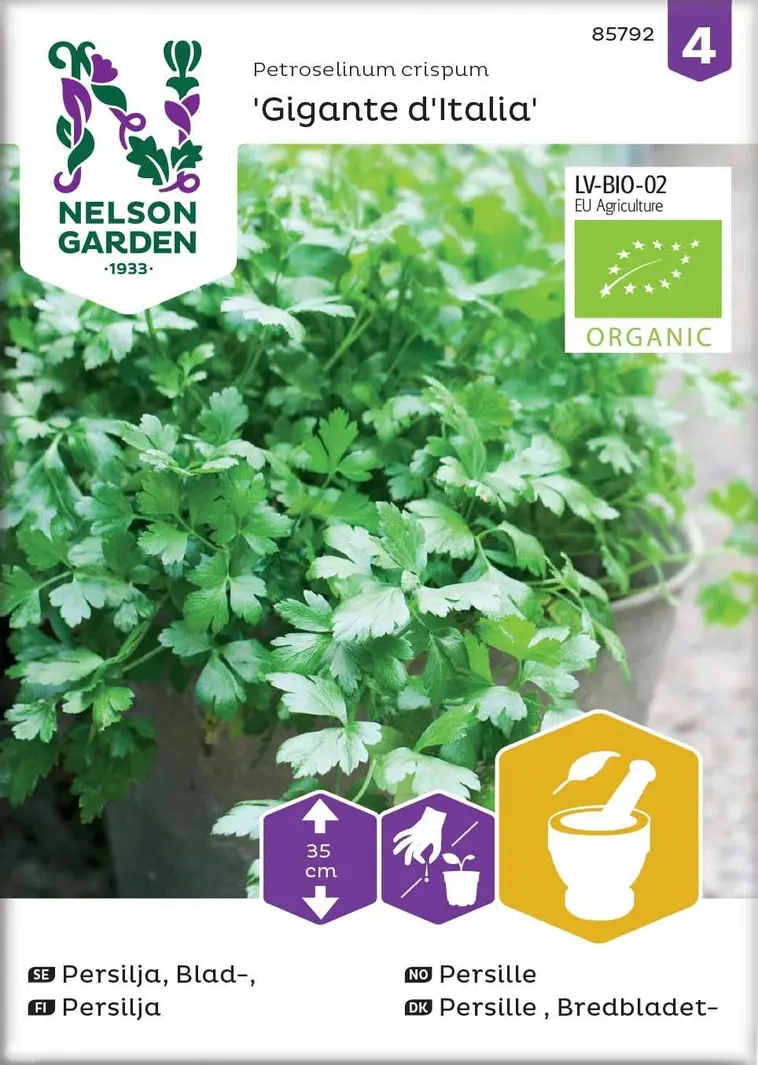Nelson Garden Siemen Persilja, Sileäleht. Giga.d’Italia, Luomu