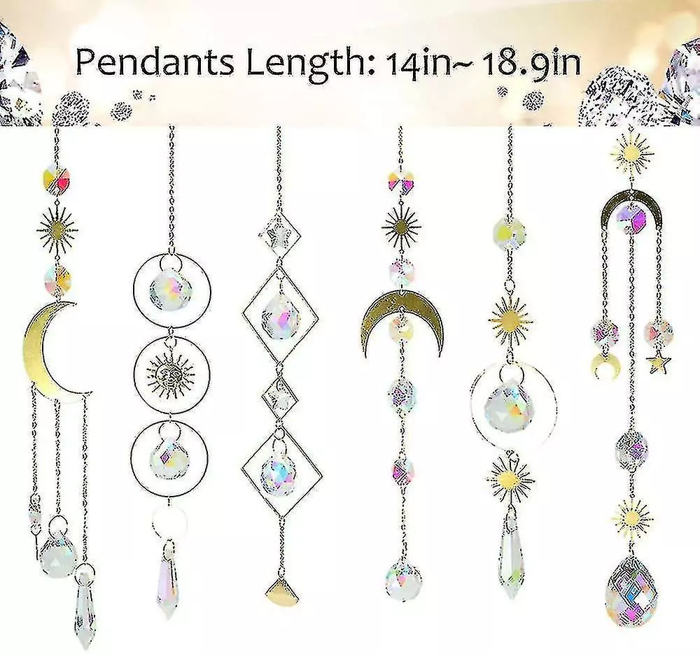 Nufasion Other Garden Statue 6 Pieces Colorful Crystals Suncatcher Hanging Suncatcher With Chain Pendant Ornament Crystal Balls For Window Home Garden Chri