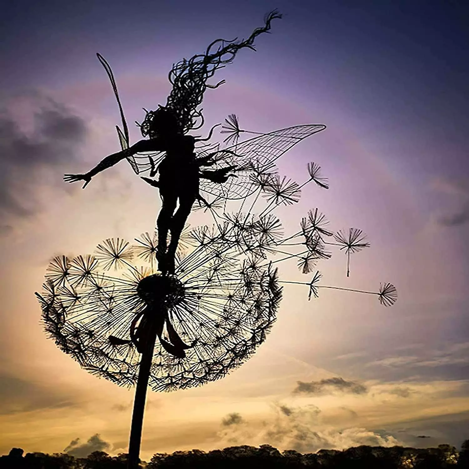 Spmyv Dandelion Fairies Garden Art Dancing Sculpture Yard Decorations Stainless Steel Dandelion Fairy Garden Ornaments For Outdoor Decor Metal