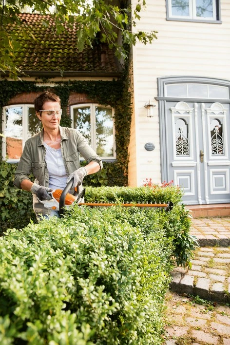 Hyvin kevyt ja tehokas akkukäyttöinen pensasleikkuri oksien siistimiseen talon läheltä. Yhdeltä puolelta hiottu terä, jonka hammasväli on 24 mm, integroitu leikkuusuoja, ruuvattu kärkisuoja, integroitu akku lataustilan merkkivaloilla, paino 2,3 kg