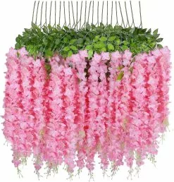 [Applications] – The string flowers are perfect for wedding bouquet, party, office decoration,decor, altar,church, corsages, pew bows, reception centerpieces, you can hang it on the wall, doors, swing, mirrors and anywhere as you like to enjoy with artificial leaves vine.[Package Included] – 24-Pack Artificial Wisteria Vines. Size of each fake flower vine: about 3.6 Feet in length per artificial wisteria with 3 branches,each string is 21.65″, more flower in each string, extra thick and beautiful.