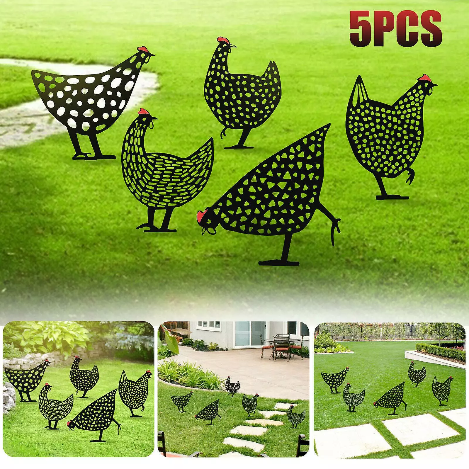 Hollow Chicken Shape Decoration: This stake is designed with a chicken shape, which is energetic and vivid, making your life elegant because it decorates your yard interesting.