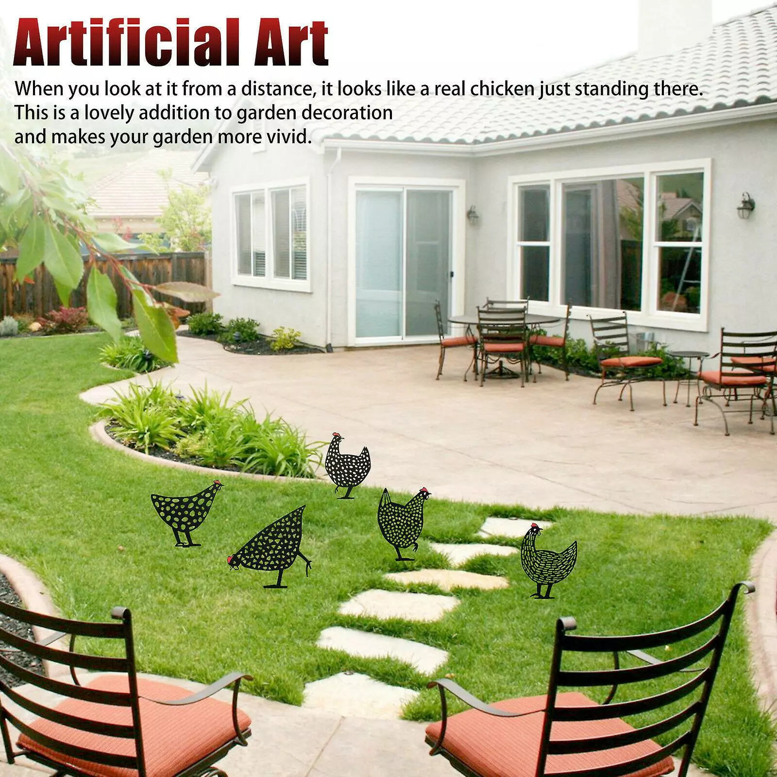 Artificial Art: When you look at it from a distance, it looks like a real chicken just standing there. This is a lovely addition to garden decoration and makes your garden more vivid.