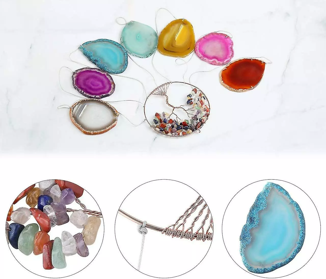 Material: natural agate slices, chakra fragments, nylon cord, gold-plated titanium-coated copper wire.