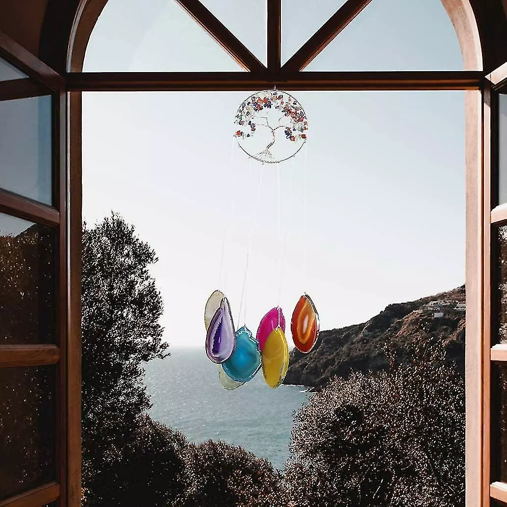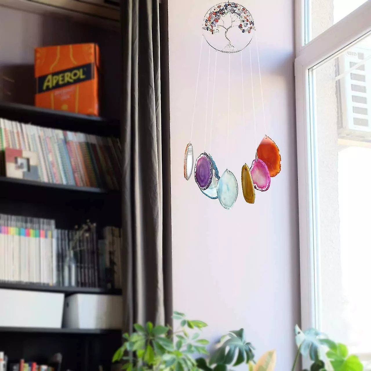 Suncatcher Mobile Decorative DecorationIt is a perfect piece of healing inspirational decor for window, bed, yard, patio, yard, deck and balcony Christmas tree, portico, restaurant, coffee house and more. When the sun shines through the agate slices, they show all their beauty.