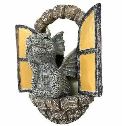About this item Dragon Garden Statue:The Cute Dinosaur Opened The Windows And Doors,Smiling And Looking Cute,As If He Had Just Woke Up From His Sleep To Welcome A New Day.Install It On Trees,Fences,And Lovely Dinosaur Sculptures Will Bring You And Your Visitors A Good Mood. RESIN DRAGON FIGURINE:The Dinosaur Decorative Ornaments Are Made Of Resin,Hand-painted And Polished,And The Surface Has A Protective Coating To Ensure Waterproof And Sun Protection,And Excellent Durability.The Dinosaur Climbing Window Is More Peaceful Like A Fairy Tale World,Conveying Love And Warmth To Everyone. Add Vitality:This Cute Dragon Sculpture Looks Good.It Can Be Used As A Part Of The Existing Rural Garden,Adding Vitality To The Garden During The Day Or Night,And Bringing Miracles And Charm To Your Outdoor Space. Warm Gift:Garden Statue Is One Of The Best Gifts You Can Give,Bringing The Love And Warmth Of The Fairy Tale World To Your Family And Friends,Providing Perfect Garden Decoration. Wide Uses:Garden Sculptures And Statues,Garden Gnomes,Outdoor Statues,Outdoor Garden Gnomes,Solar Garden Decorations,Dwarf Garden Decorations,Easy To Match With Surrounding Objects,Is A Good Outdoor Terrace Decoration,Yard Decorations.package include1x Statue