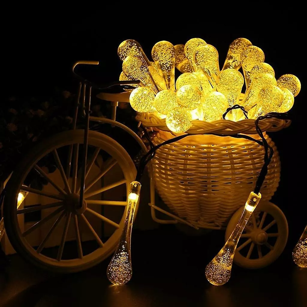 30 white raindrop bulb solar LED lights – Waterproof and suitable for indoor as well as