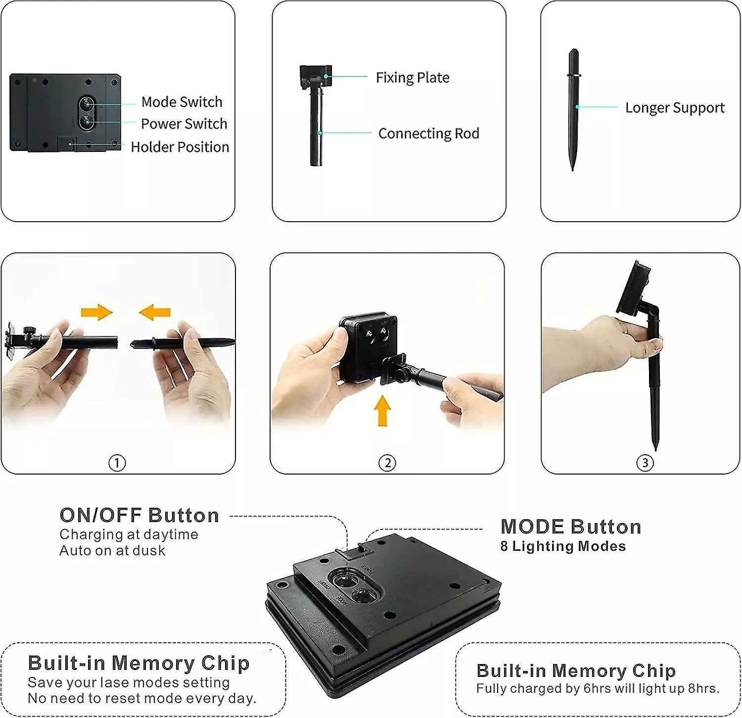 Easy to install & Energy SavingWith upgraded solar panels, no additional public cost of electricity. Charging for 6-8 hours during the day, and automatically power on at night. It is easy to install. First hang the big star on an 11-foot-high exterior wall or tree, and then hang 9 strings of lights on the ground. The lamp is designed with two switches (on/off) Operation and mode settings). Press the switch to select the desired mode, and then enjoy the romantic atmosphere.^